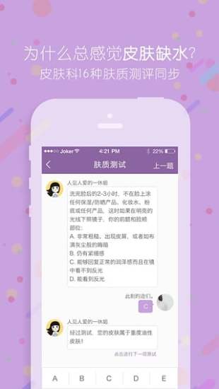 采用多种国际肤质分类标准和美丽修行秘密算法得出结果,经过长期的测试和积累在测试过程中保证了结果的准确性。参与测试掌握自己肌肤的秘密,同肤质推荐还能找到跟自己肤质一样的好闺蜜、分享同肤质产品使用感受。我们的测试包含16个维度分析,从油脂分泌到屏障功能全面评估。测试后生成的个性化报告会给出详细的护理建议,并推荐最适合您肤质的产品清单。定期测试还能追踪肤质变化,及时调整护肤方案。