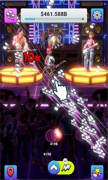 游戏最突出的特色在于深度定制的音乐团队系统。玩家可以自由招募风格各异的音乐人,通过个性化培养打造独一无二的超级乐团。丰富的服装定制系统让每位成员都能展现独特魅力,从发型到配饰都可随心搭配。创新的设备改造功能可将普通乐器转化为炫酷的电子光效装备。最令人震撼的是比赛场景的呈现,音乐节现场人潮涌动,灯光与音效完美配合,带来身临其境的视听盛宴。
