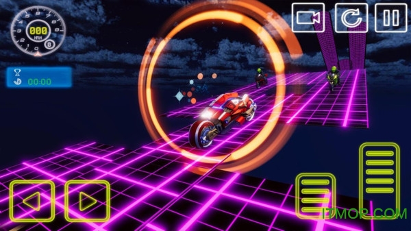 霓虹摩托车特技赛车最新版是一款充满未来科技感的摩托竞速手游,以极简操作带来极致快感。玩家仅需通过左右倾斜和加速按键,就能驾驭炫酷的摩托车穿梭于赛博朋克风格的立体赛道。游戏精心设计了充满挑战性的悬浮平台赛道,玩家需要在高空特技与极限速度间找到平衡,既要避免从狭窄的赛道上坠落,又要完成各种惊险的空中翻转动作。动态光影效果与霓虹色彩的碰撞,搭配真实的物理引擎,为玩家打造出身临其境的未来都市飙车体验。