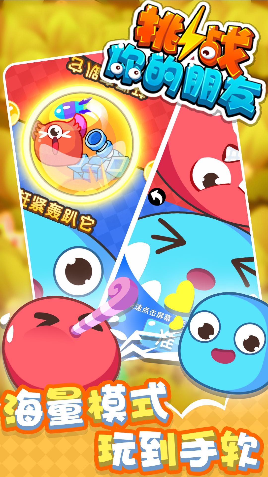 这是一款专为社交互动打造的休闲竞技游戏合集,主打双人实时对战玩法。游戏采用模块化设计,包含数十种不同类型的迷你游戏,从反应速度测试到策略比拼应有尽有。你可以通过好友邀请或随机匹配系统找到对手,在轻松愉快的氛围中展开较量。每局游戏时长控制在3-5分钟,特别适合利用碎片时间娱乐。独特的积分排行榜系统还能记录你和好友的战绩,让每次对决都充满竞技乐趣。