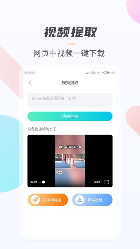 1、全新升级:处理视频的得力助手,新增批量处理功能,可同时解析多个视频链接,大幅提升工作效率。内置智能修复算法,能自动优化压缩导致的画质损失。