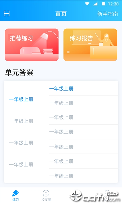 该版本优化了用户界面和功能模块布局。登录后首页包含推荐练习、练习报告和单元答案三大核心模块,用户可快速选择所在学校和班级信息。教材学习页面新增作业布置功能,练习报告模块详细记录学员的完成状态和学习进度。社交功能方面,校友圈整合了班级通讯录、校内外联系人管理、即时聊天和动态分享等功能,构建了完整的教学社交网络。