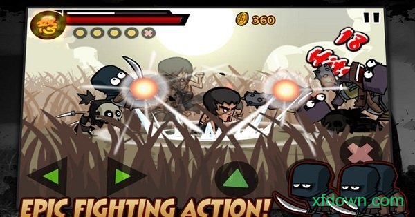第四关难度明显提升,首次出现防御力较高的二级忍者兵。本关可解锁强力道具"元素死亡攻击",售价2000金币。敌人组合包括步枪兵和二级忍者兵,后者能承受6次攻击且擅长跳跃攻击。建议采用拉锯战术,先解决脆弱的步枪兵,再用跳跃引诱忍者兵集中歼灭。注意收集关卡中随机掉落的道具,这些临时增益能显著提升战斗效率。