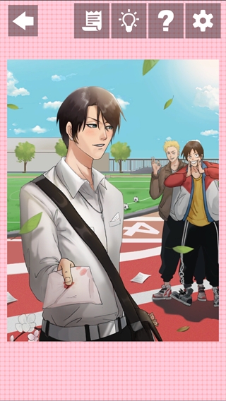 第三个,白色衬衣男生的情书上面。情书上的文字需要玩家通过拼图小游戏才能完整阅读,里面藏着主角的真实想法。