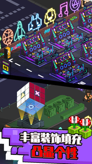 2、海量个性化装扮等你选择,打造实时的游戏厅风格。游戏提供数百种装饰物品,从霓虹灯招牌到复古海报,从地板花纹到墙面装饰,玩家可以自由搭配,创造出独一无二的游戏厅风格。不同的装修风格还会吸引不同类型的顾客群体。