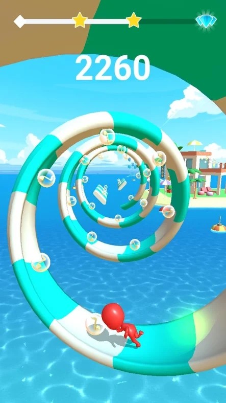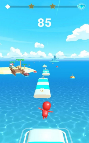 1、游戏采用简洁的一键式触摸操作,玩家只需拖动屏幕即可控制舞者奔跑跳跃。核心玩法看似简单实则充满挑战,玩家需要时刻保持专注,确保角色始终在瓷砖上移动,避免落入水中导致游戏失败。