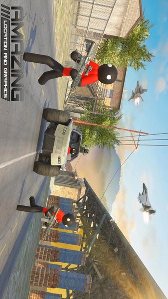 1、游戏采用经典的火柴人题材,简约的画风搭配激烈的战斗场景,为玩家带来独特的视觉体验。玩家可以在游戏中享受火柴人射击大战的乐趣,感受快节奏的战斗快感;