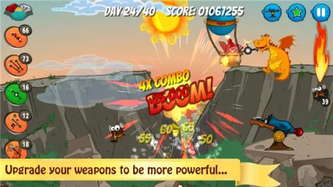 2、游戏中可以解锁多种强力武器和道具,帮助你击败怪物获得高分,以三颗星的完美评价通过每个关卡。