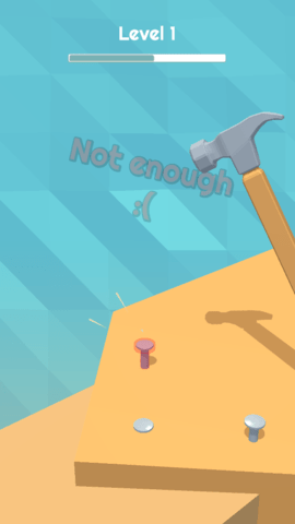 1、游戏采用极简主义的美术风格,画面干净清爽,所有元素都一目了然,让玩家能够快速理解游戏内容。2、游戏场景中遍布着各种可爱的卡通风格木屋,这些木屋上布满了需要处理的钉子,构成了游戏的主要挑战对象。3、玩家的核心任务就是运用锤子将这些钉子全部敲入木屋中,看似简单实则充满技巧性。4、钉钉子需要掌握恰到好处的力度和角度,稍有不慎就可能把钉子敲弯,导致任务失败,这种精细操作带来了独特的游戏乐趣。