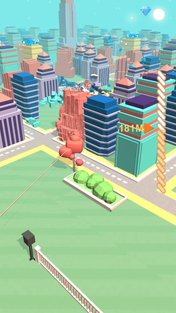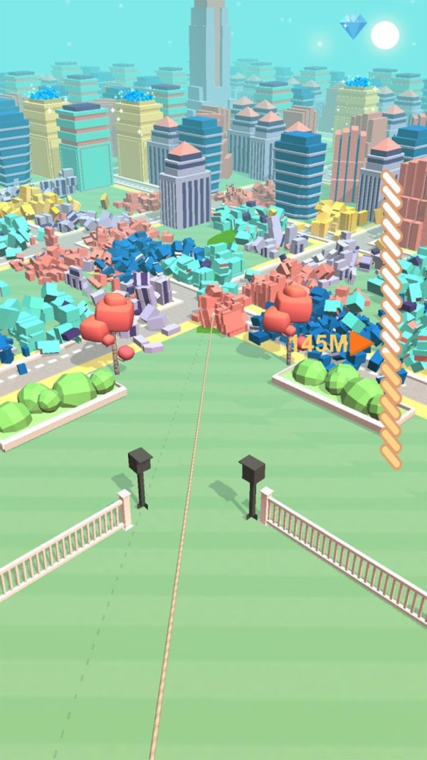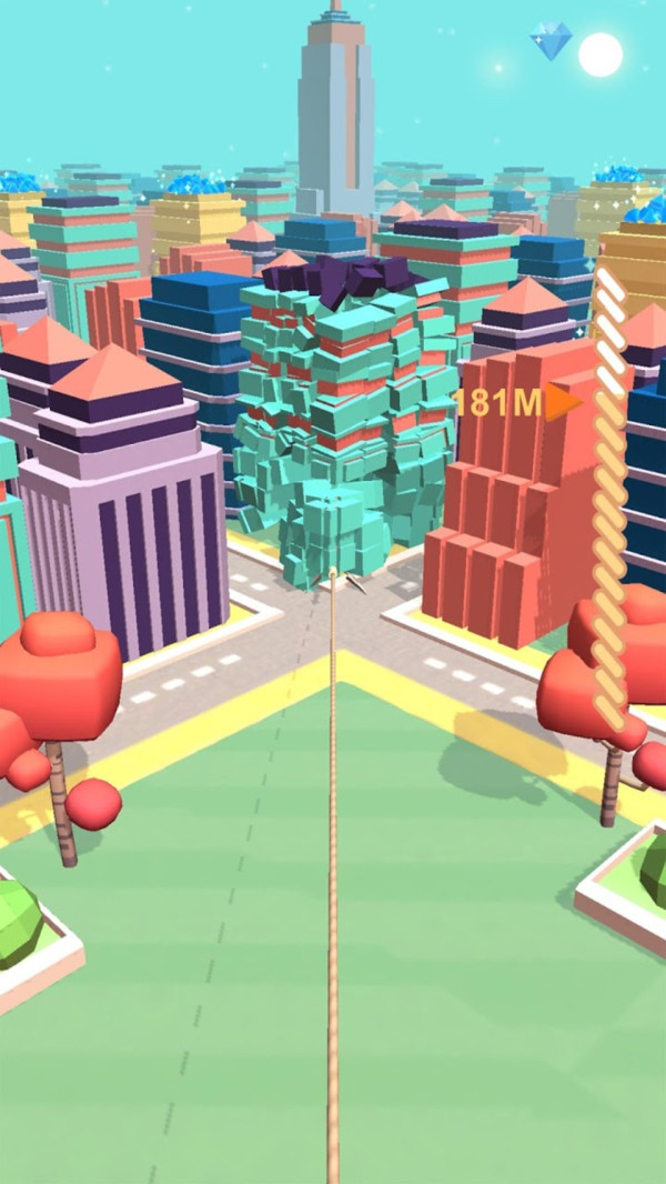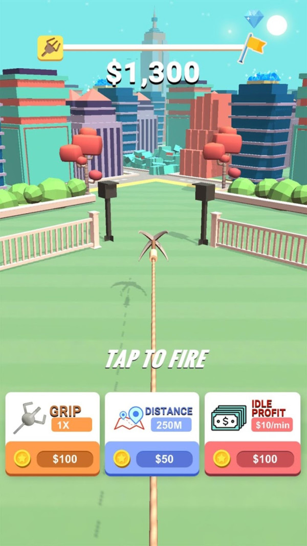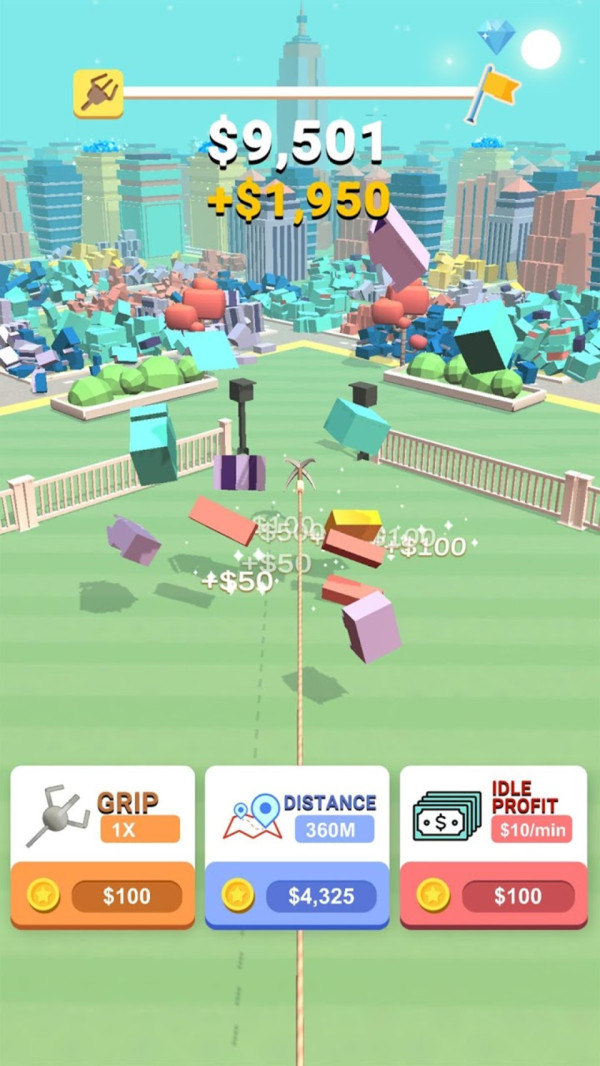 2、游戏采用渐进式奖励机制,破坏建筑获得的金钱可以用来升级飞钩的威力、射程和特殊效果,比如火焰钩、爆破钩等,让破坏过程更加爽快。