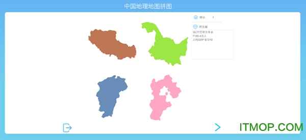 中国地理拼图是一款寓教于乐的休闲益智游戏,以中国地图为背景,将各省市板块设计成趣味拼图。玩家通过手指滑动即可轻松完成拼图挑战,在娱乐中学习中国地理知识。游戏包含省级行政区划、主要城市等多种拼图模式,适合各年龄段玩家体验。精美的地图设计和互动玩法,让你在轻松氛围中掌握各省份位置、形状及省会信息,是学习中国地理的绝佳选择。快来开启这段充满知识与乐趣的地理探索之旅吧!