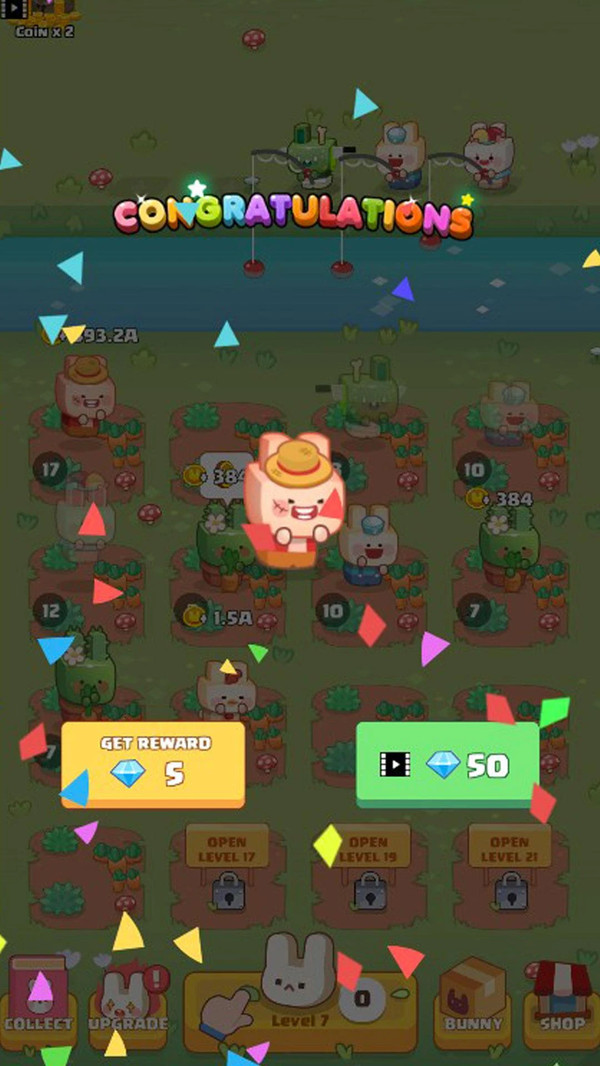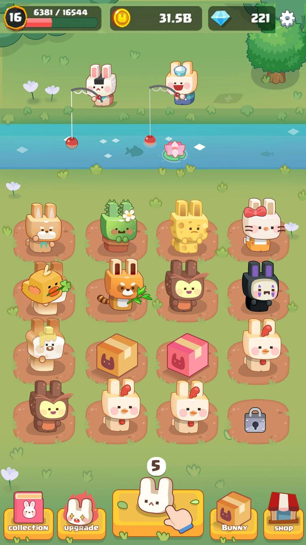 1、游戏中所有钻石都可以通过完成任务免费获得,不需要任何充值就能享受完整游戏内容。2、新增的钓鱼玩法让游戏更具趣味性,玩家可以指挥兔子钓鱼,收集96种不同鱼类完成图鉴。3、通过不断合并升级,最终可以收集到50种造型各异的兔子,每只都有独特的动作和表情。