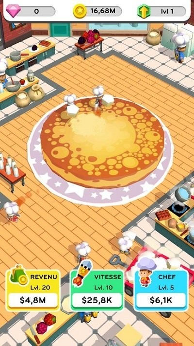 2、游戏中即使你是大厨,也需要不断的去学习更多菜谱丰富餐厅的菜品。游戏设有烹饪学校系统,你可以派遣厨师进修学习新菜式,或者研发创意料理。掌握更多菜谱不仅能吸引更多顾客,还能提高餐厅评级。