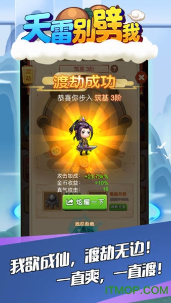 天雷别劈我正式版是一款充满仙侠魅力的RPG手游,带你体验无与伦比的修仙乐趣。在浩瀚的四海八荒中,你将与众多上仙一同渡劫飞升,感受震撼的视觉特效与激爽的妖魔战斗。游戏不仅拥有华丽的技能特效,还为你准备了绝世灵宠与圣兽护法,助你驱散神鬼,成就无上仙途。无论是休闲玩家还是硬核修仙爱好者,都能在这里找到属于自己的快乐。