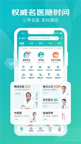 1、【京东家医】 平台推出家庭医生尊享服务,由全科室专业医师团队提供7×24小时不间断问诊支持。一个账号即可覆盖全家人的健康需求,特别推出30天免费体验活动。用户完成健康任务还可领取专属红包奖励,让健康管理变得更有趣味性和获得感。