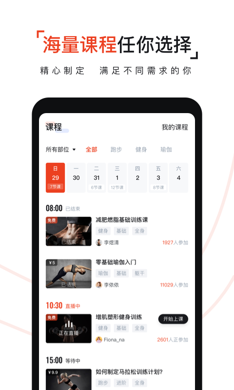 本次更新对首页进行了全新改版,课程展示更加直观易懂。直播间新增半屏模式,让用户和教练的画面显示更加清晰。新增的"仅对教练可见"摄像头模式,充分尊重用户隐私选择。优化了直播间准备画面,使直播引导更加明确。新增的弹幕互动功能让学员与教练的交流更加便捷。特别推出的新手课程帮助新用户快速上手,而新增的注册问卷则帮助我们更好地了解用户需求。