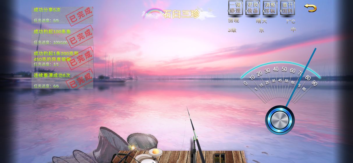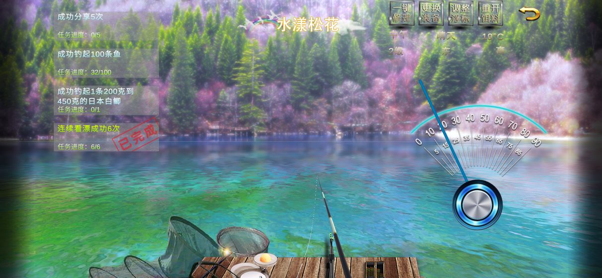 3、通过完成各种钓鱼挑战任务,玩家可以逐步提升垂钓等级,最终获得"钓鱼宗师"的荣誉称号,游戏操作简单易上手,只需轻点屏幕就能完成全套钓鱼动作;