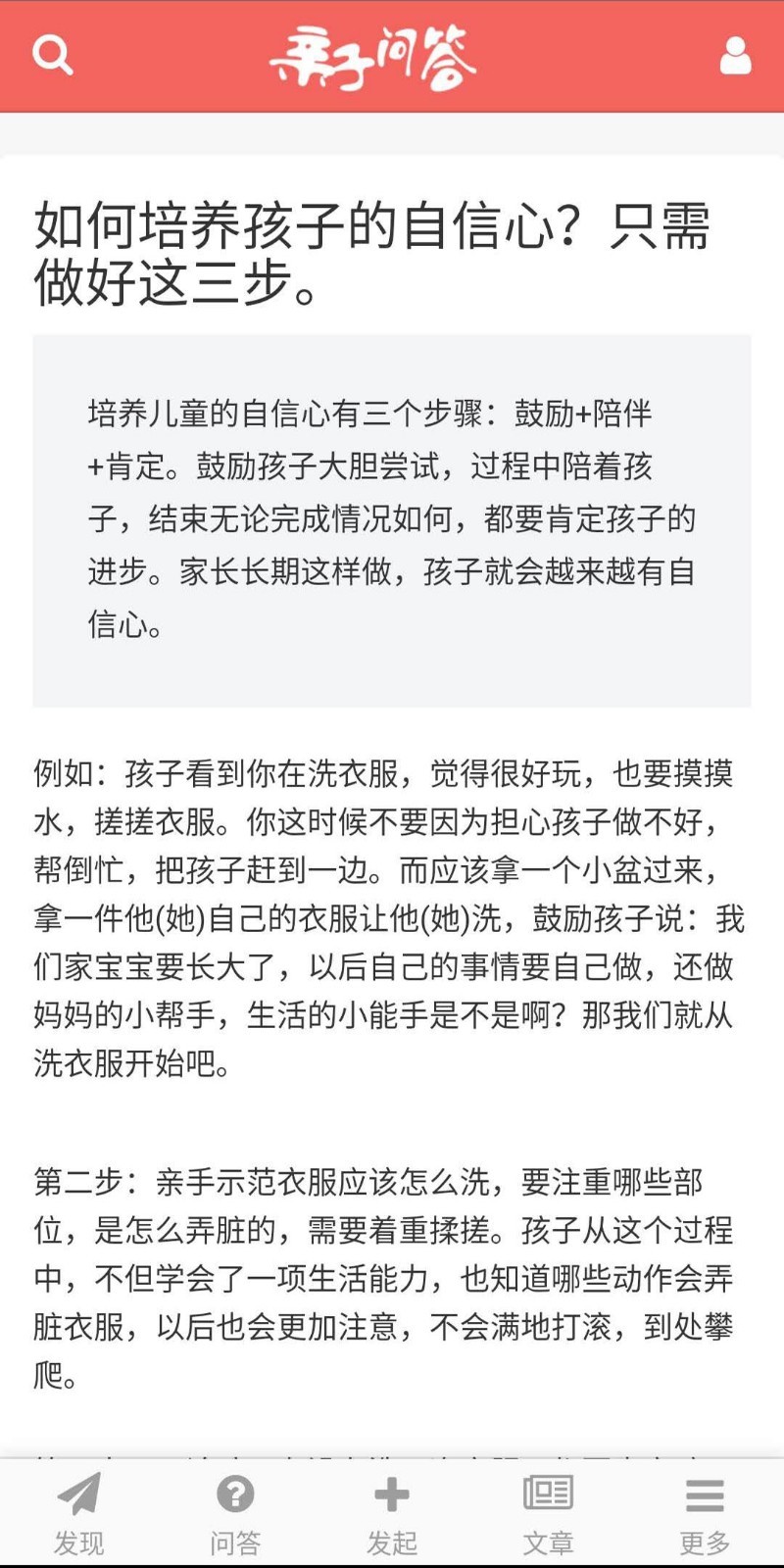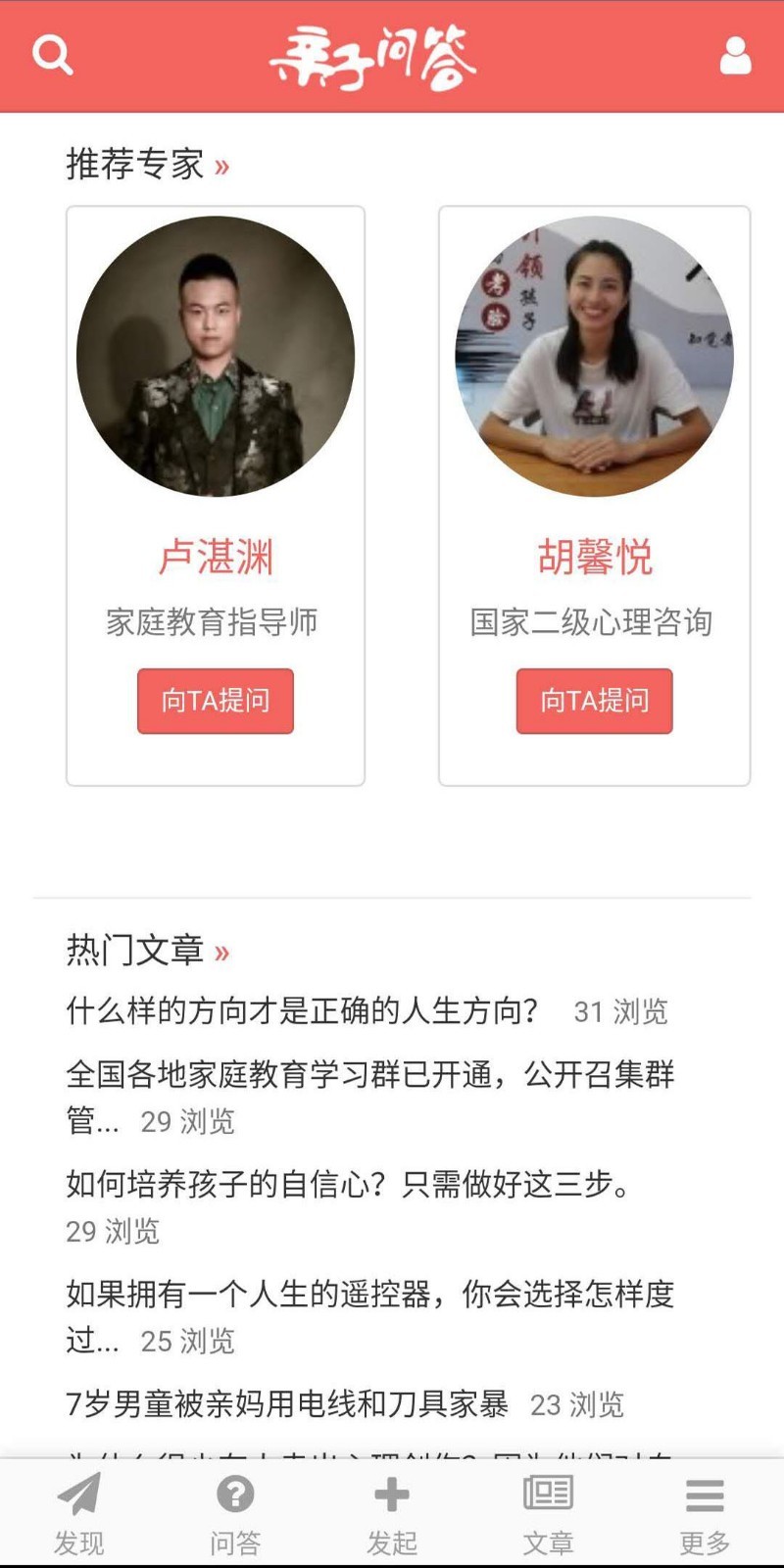 "亲子问答"是由专业教育团队精心打造的家庭教育问答社区平台。该平台致力于为家长提供科学、系统的育儿指导,汇集了来自全国各地的资深家庭教育专家、心理咨询师和优秀家长代表。在这里,您可以随时提出育儿困惑,获得专业解答;也可以浏览其他家长的提问,学习实用育儿经验。平台采用简洁明了的界面设计,让家长能够快速找到所需内容,实现高效育儿知识获取。