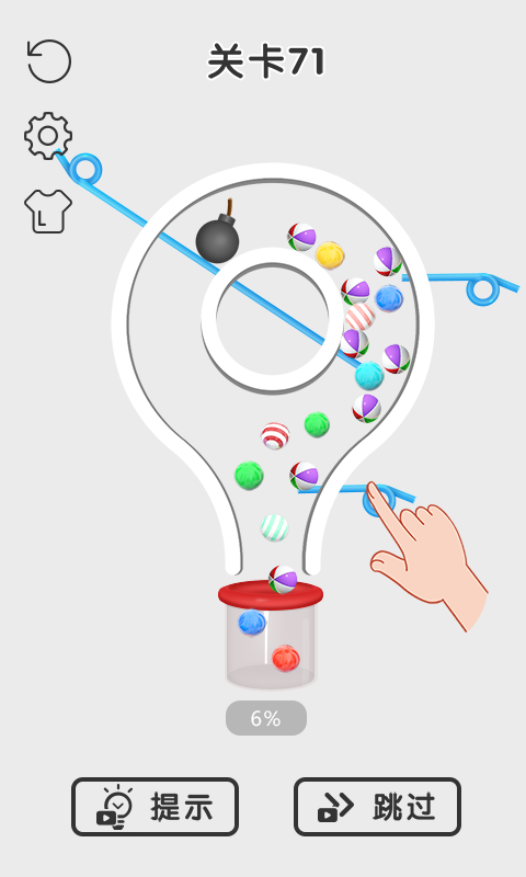 游戏中最关键的技巧就是避开炸弹陷阱,任何失误都会导致前功尽弃。建议新手玩家先观察整个场景布局,在脑海中模拟可能的移动路线。对于染色关卡,要优先考虑如何让彩色小球接触到更多无色小球。每根别针的移除顺序都至关重要,有时候需要保留某些别针作为临时阻挡。当遇到困难时,不妨尝试从不同角度思考,游戏中的机关往往有多种解法。记住,耐心和细心是通关的关键,多尝试几次总能找到最佳解决方案。