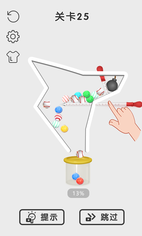 2、炸弹是游戏中需要特别注意的障碍物,一旦小球触碰就会导致失败,玩家需要巧妙设计路线避开危险,考验应变能力。