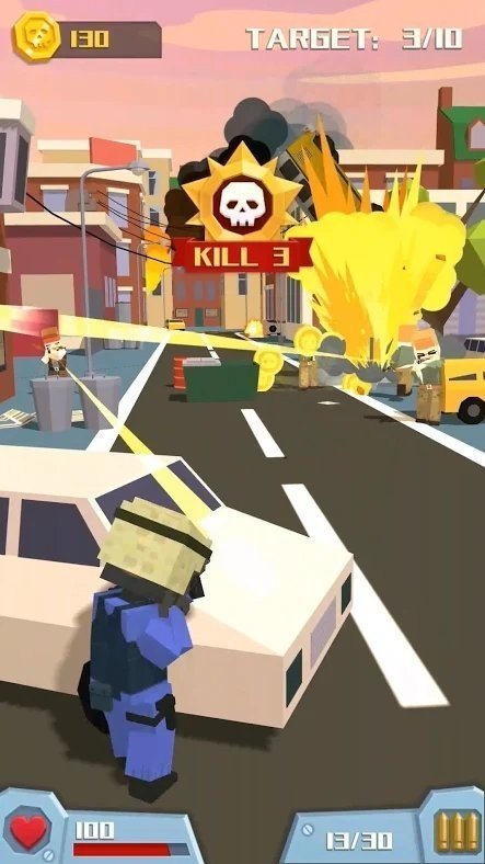 1.游戏中采用了采用方块人的角色,开启一场全新的射击战斗体验,这种独特的角色设计不仅让游戏画面更具辨识度,还为战斗增添了别样的趣味性。方块人的动作表现流畅自然,射击特效炫酷夺目,为玩家带来视觉上的享受。