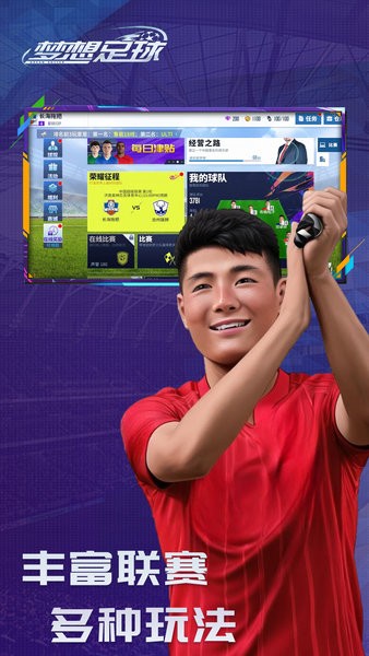 梦想足球是一款集经营策略与即时竞技于一身的足球手游。玩家可以自由选择成为运筹帷幄的球队经理、严格要求的专业教练,或是冲锋陷阵的明星球员。作为经理,你需要精打细算转会市场,打造最具性价比的冠军阵容;作为教练,要制定科学的训练计划,临场指挥时更要像穆里尼奥那样激情四射;作为球员,则要磨练盘带、射门等各项技术,在关键比赛中力挽狂澜。游戏完美还原了现代足球的每个细节,让你全方位感受这项运动的独特魅力。