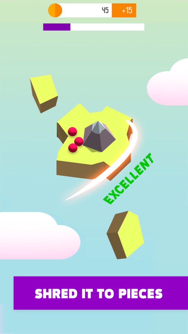 1、游戏画面非常的简洁,玩家可以感受无限的乐趣。采用低多边形美术风格,所有物体都呈现出干净利落的几何形状,在保证画面表现力的同时最大程度降低设备负担。2、简单的游戏操作,随心所欲的切割岛屿。只需单指滑动就能完成所有操作,没有复杂的按键组合,老人小孩都能轻松上手,但想要成为切割大师仍需多加练习。3、所设置的关卡数量比较的多,关卡等级提升以后时间也会越来越短。游戏包含8大主题章节共120个关卡,后期关卡要求玩家在限定时间内完成特定形状的切割,挑战性十足。