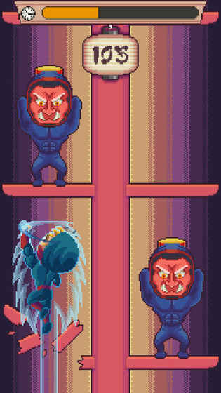 在日本的夜晚。满月。一个新的忍者必须尽可能高地爬上忍者塔,避免击中主忍者的锤子。游戏背景设定在神秘的东方国度,皎洁月光下的忍者塔散发着危险而迷人的气息。玩家扮演的年轻忍者肩负着特殊使命,需要在阴影中穿梭,利用各种忍术道具突破重重阻碍。塔内不仅有普通守卫巡逻,还有实力强大的主忍者坐镇高层,他们手持巨型锤子,一旦被发现就会面临致命打击。游戏通过细腻的像素动画完美呈现了忍者矫健的身姿和流畅的动作,让玩家沉浸在这个充满东方韵味的冒险世界中。