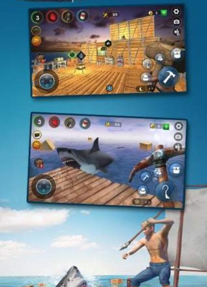 2.自由建造系统提供数十种建筑模块,玩家可以设计并升级专属木筏,从简易平台到豪华游艇,打造独一无二的海上家园。