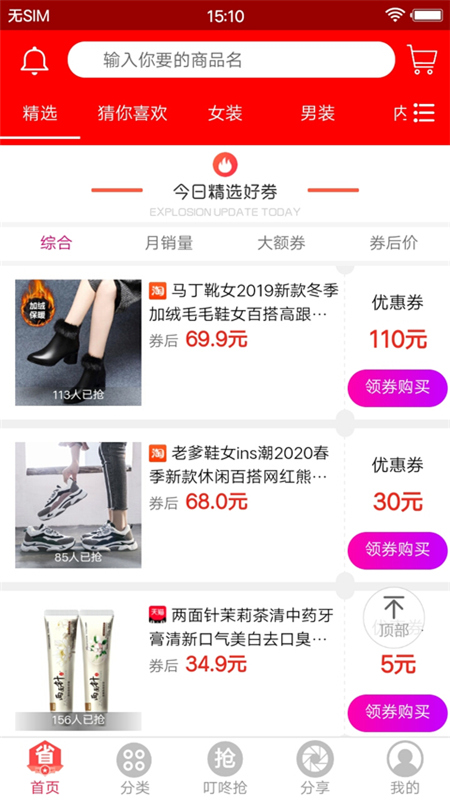 【省钱神器】覆盖淘宝天猫90%以上的商品优惠信息,包括隐藏券、满减活动、店铺红包等。特别设置的大额券专区,经常能淘到5折以下的超值好货。