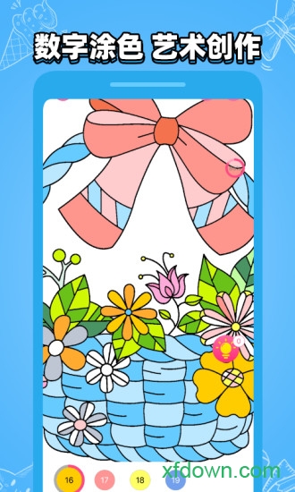 1、创新的数字填色玩法,每个色块都有对应的数字标识,按照提示完成涂色就能创作出精美作品!