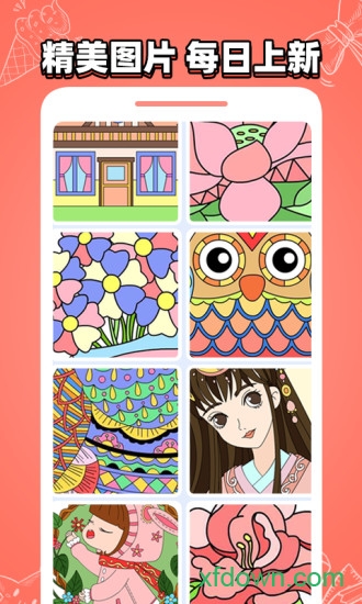 1、丰富多样的涂鸦主题,包含可爱的动物、美丽的花卉、梦幻的风景等上百种图案,总有一款能打动您的心!