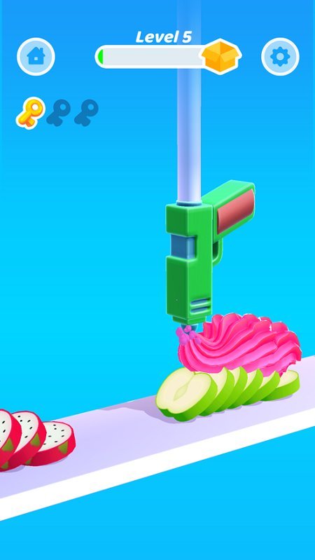 2、虽然游戏操作简单易上手,但要成为真正的奶油大师需要不断练习。游戏设置了循序渐进的教学关卡,从基础挤花到复杂造型,帮助玩家逐步掌握各种装饰技巧。