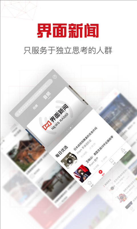 9短视频集群:整合面谈、界面Vnews等多个原创栏目,每日更新全网热门短视频。丰富的内容形式满足用户碎片化阅读需求。