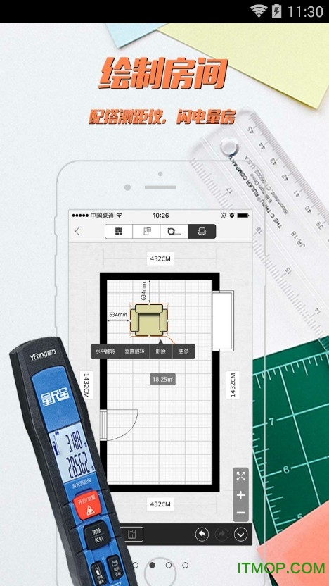 2.绘制房间,搭配测距仪,闪电量房。通过手机摄像头即可快速捕捉房间轮廓,自动生成精确的平面图。支持添加门窗、家具等细节标注,输出专业级CAD图纸。
