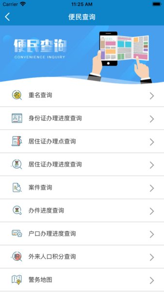 涵盖出入境、人口管理、治安管理、监管业务等多个部门的办事指南,支持在线咨询、预约办理和进度查询;