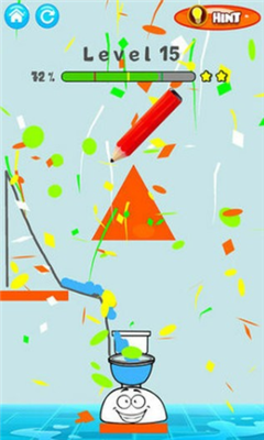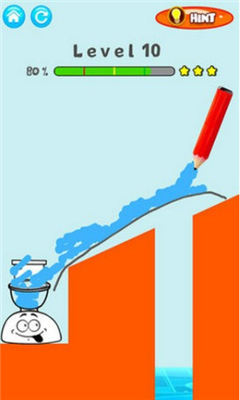 1、游戏操作简单直观,玩家只需用手指在屏幕上绘制线条,为水流搭建通往马桶的通道即可。线条的绘制角度和长度都会影响水流走向,需要精准控制;