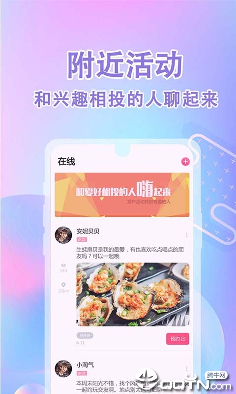 【附近活动】基于LBS定位技术,精准推送3公里内的兴趣聚会,和同频伙伴聊美食、聊旅行、聊人生,告别尬聊冷场。