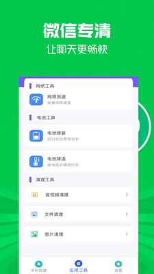 1.深度清理微信聊天中产生的图片、视频、音频等文件,聊天更加流畅。该功能采用智能识别算法,能准确区分重要文件和可清理内容,避免误删重要资料。同时支持按时间、类型等多维度筛选,让清理更加精准高效。