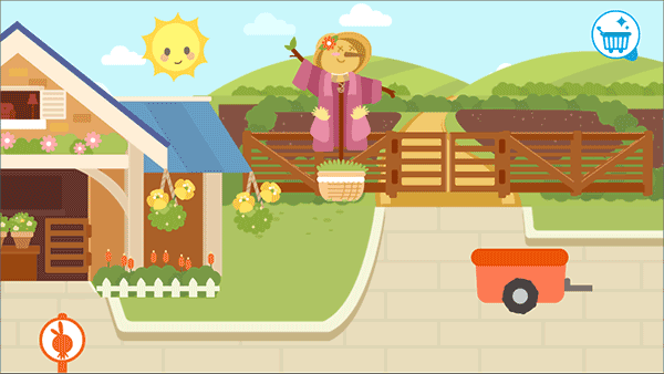 1、进入游戏后,随意点击一处进入农场;游戏采用直观的触控操作,孩子可以轻松上手,自由选择想要探索的区域。