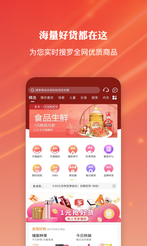 【淘宝天猫超多好货】平台与淘宝天猫深度合作,覆盖服饰、数码、家居等全品类商品,90%以上商品都可查询到专属优惠券。智能比价系统会自动筛选同款商品的最低价,省去您比价的时间。