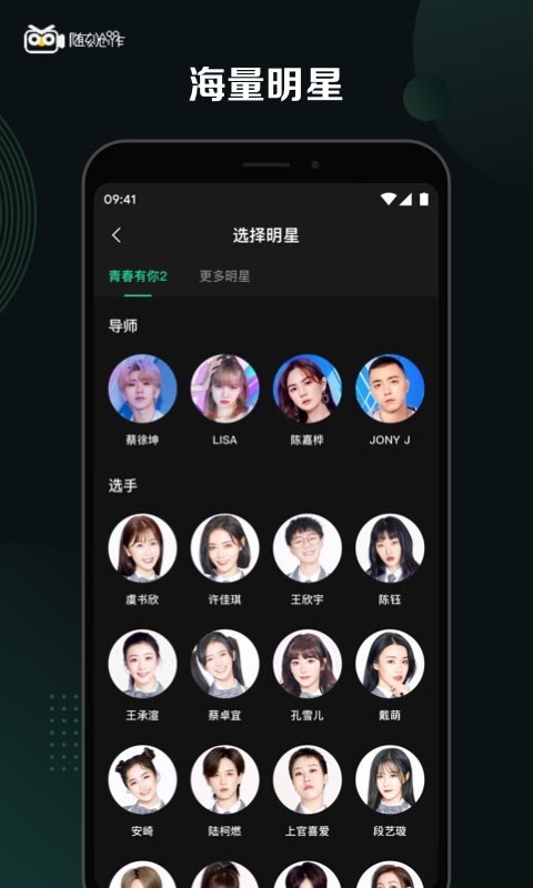 ·一键选择喜欢的明星和音乐,10s内即刻创作出,系统智能匹配转场效果和字幕样式