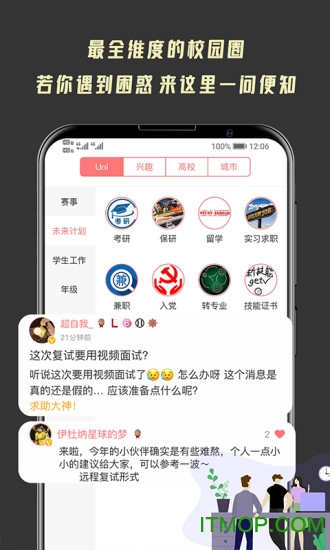 【多维度校园圈子】为你打造全方位的信息分享和交流平台,当你在大学生活中的一些事情变得困惑时,来这里一问便知~平台设有学习交流、社团活动、情感树洞等数十个主题圈子,每个圈子都有专业版主维护秩序。你可以在这里找到志同道合的朋友,分享学习心得,倾诉生活烦恼,甚至组织线下聚会活动。