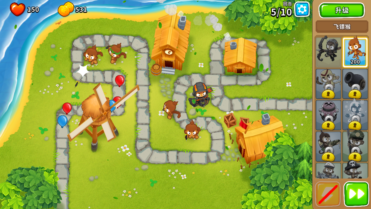 1、直观的拖拽式操作配合智能路径预测系统,让玩家能轻松布置完美防线,同时通过天赋系统可定制每座塔的特殊能力。2、超过200个特色关卡包含昼夜交替、天气变化等动态要素,配合搞笑的猴子配音和轻松的背景音乐,营造出独特的游戏氛围。3、游戏采用智能难度调节系统,每个关卡会动态生成不同强度的气球军团,玩家需要实时调整防御策略才能顺利通关。