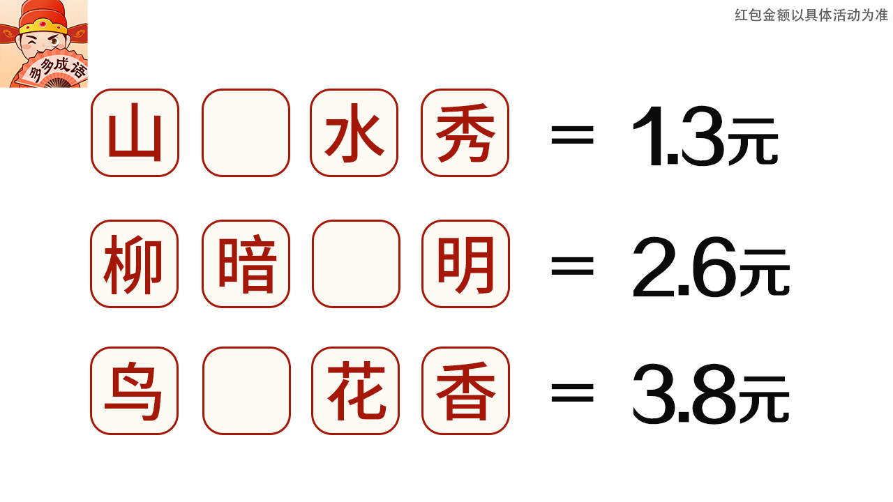 1、1个成语≈1.02元,每天轻松到账无压力!游戏采用透明奖励机制,玩家可以通过答题赚取现金,收益真实可靠。
