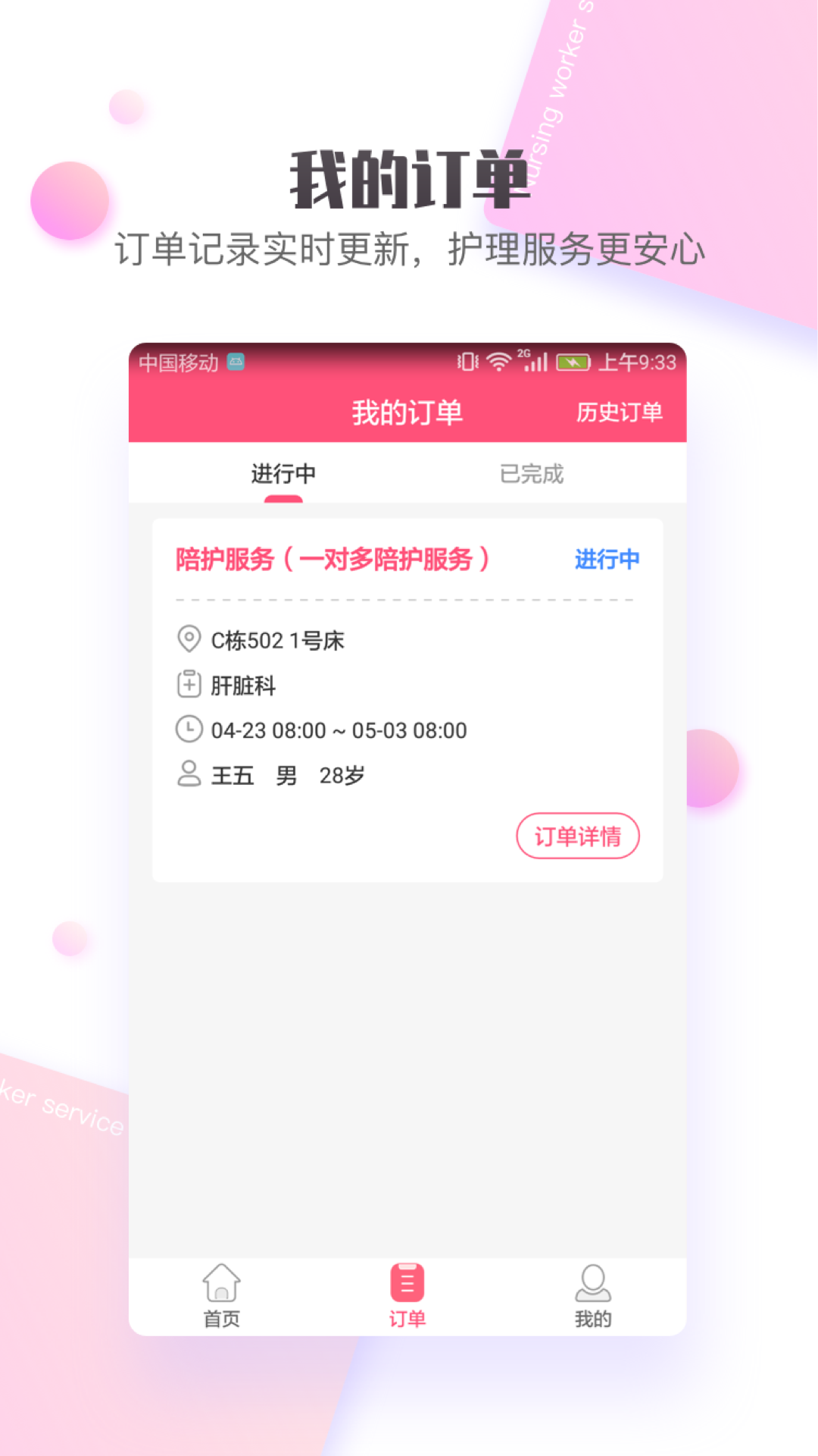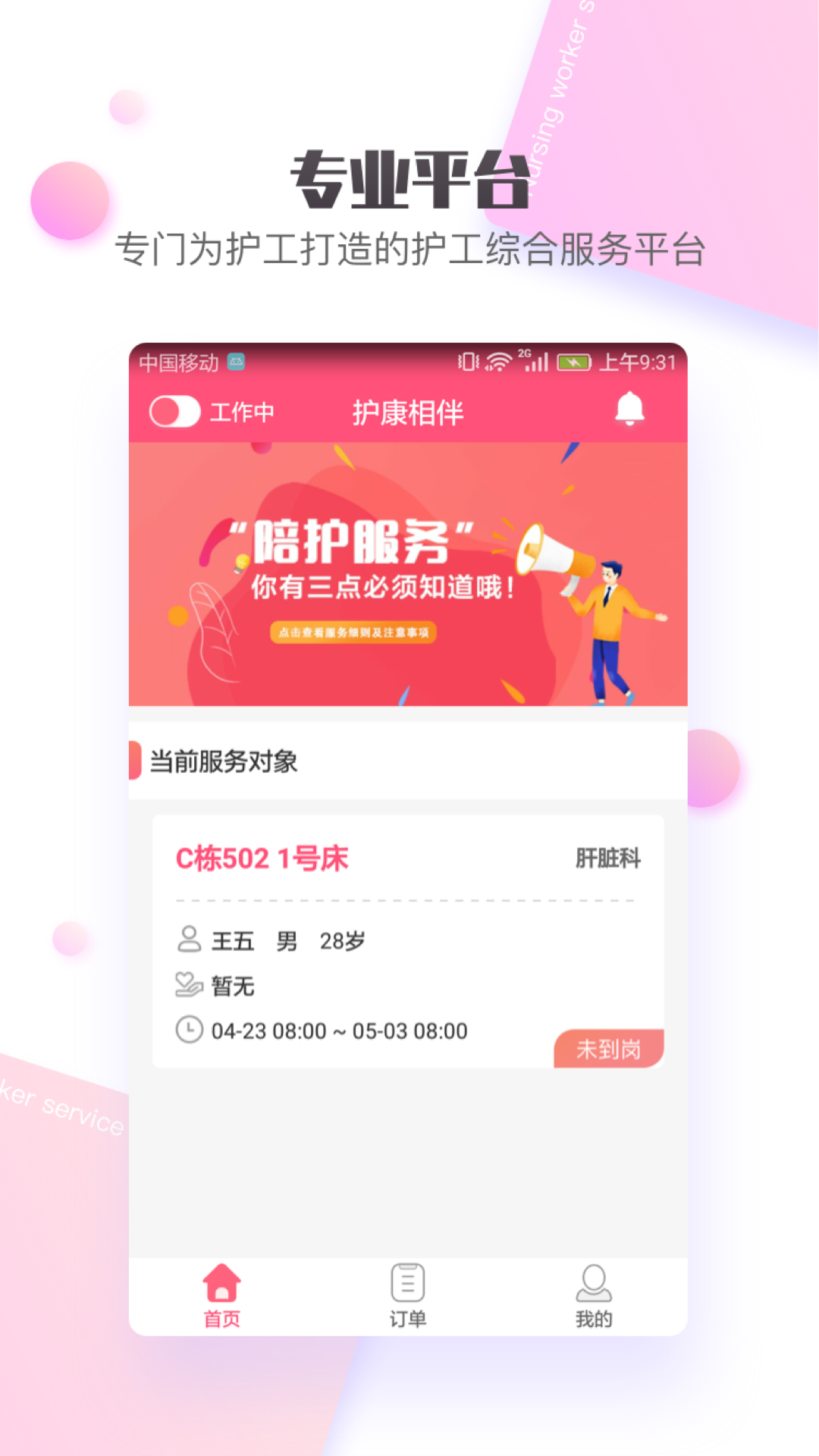 护康相伴护工端APP是专为护工群体设计的专业陪护服务平台,致力于提升护工工作效率和服务质量。该平台集订单管理、工作记录、服务反馈等功能于一体,采用智能化技术手段简化工作流程。护工可以通过手机随时查看新订单、管理服务进度,并与客户保持实时沟通,确保陪护服务的高效性和专业性,是现代化医疗陪护服务的创新解决方案。