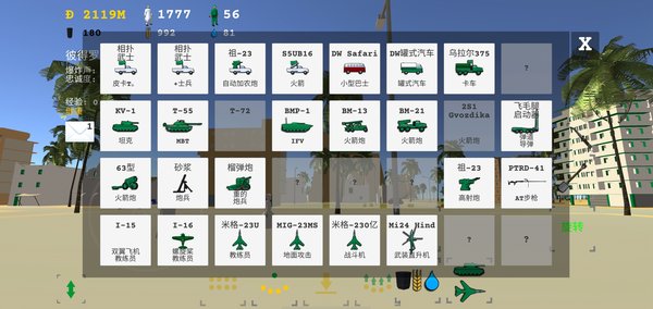 4、游戏提供了丰富的武器装备系统,包括坦克、飞机、火炮等各类热兵器。玩家可以指挥这些先进武器投入战斗,体验战火纷飞的激烈战场。