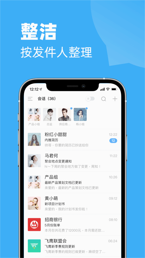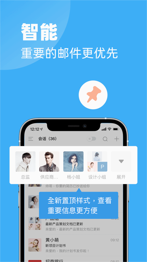 2、查看最新会话消息,轻松查看最新内容:创新的时间轴视图会自动整理邮件往来记录,智能高亮未读内容,支持关键词搜索和邮件内容预览,帮助用户快速掌握沟通重点。