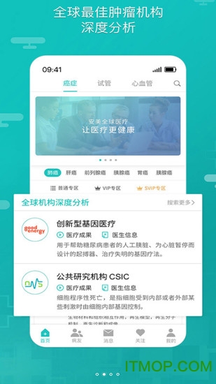 全球医app是一款专注于癌症医疗领域的专业服务平台,致力于为医生和患者提供全方位的医疗支持。平台整合了全球顶尖医疗资源,涵盖肺癌、胃癌、肝癌等各类癌症病种,提供权威医疗数据、最新抗癌技术和治疗方案。用户可通过平台进行在线问诊、查阅最新药物信息、参与病友交流,还能获取出国看病相关资讯。全球医app以专业、精准、便捷为特色,帮助用户快速获取全球前沿医疗信息,为抗癌之路提供有力支持。