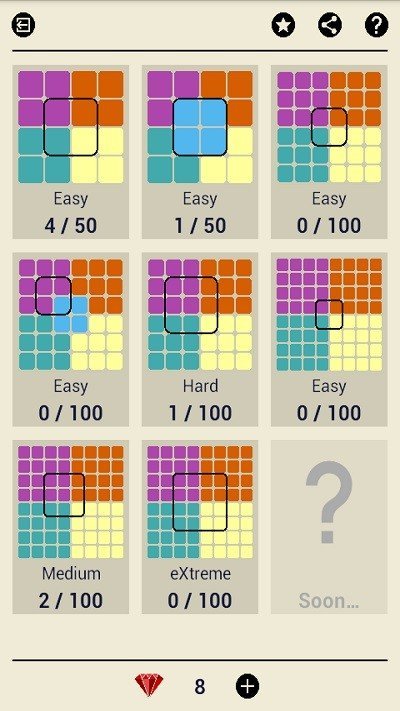 1、无限量的随机日本拼图,每次挑战都能带来新鲜感;2、日本仿古设计,独特的艺术风格让游戏更具吸引力;3、超过1000个谜题,从简单到复杂,满足不同玩家的需求;4、有8个级别和尺寸,尺寸在5х5至90х90之间,适合各种水平的玩家;5、不同设备同步功能,让你随时随地继续未完成的挑战。这些优点让红宝石方块逻辑拼图成为一款值得长期游玩的益智游戏。
